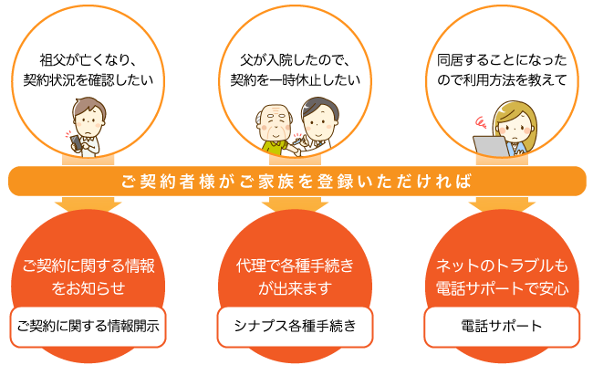 | ご契約者様が事前にご家族様を登録いただければ | |