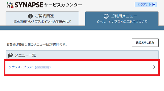 - メニュー一覧の中から、該当の接続アカウントの契約をクリックします
