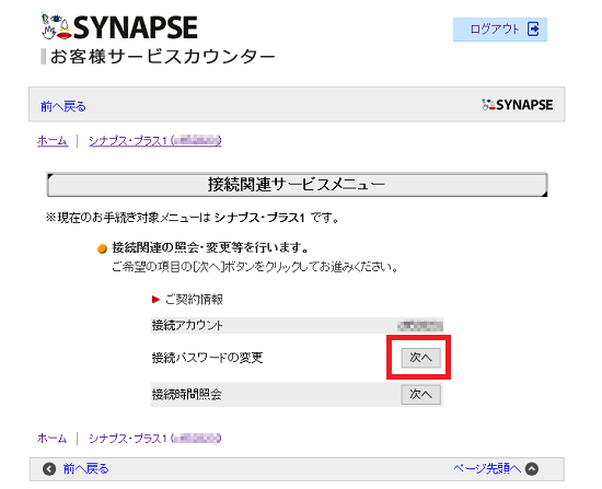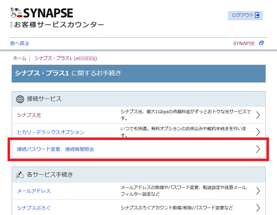 - 「接続パスワード変更、接続時間照会」をクリックします